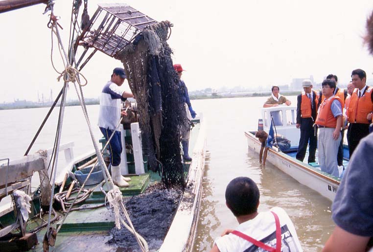 揖斐川の河口部に入れられたジョレン(川床から貝をすくい上げる網のようなもの)にはヤマトシジミが上がってくるが、かつては「シジミが湧く」とまで表現されていた長良川河口部では、悪臭を放つ真っ黒な「ヘドロ」しか上がってこず、その中には貝殻さえも見られない。